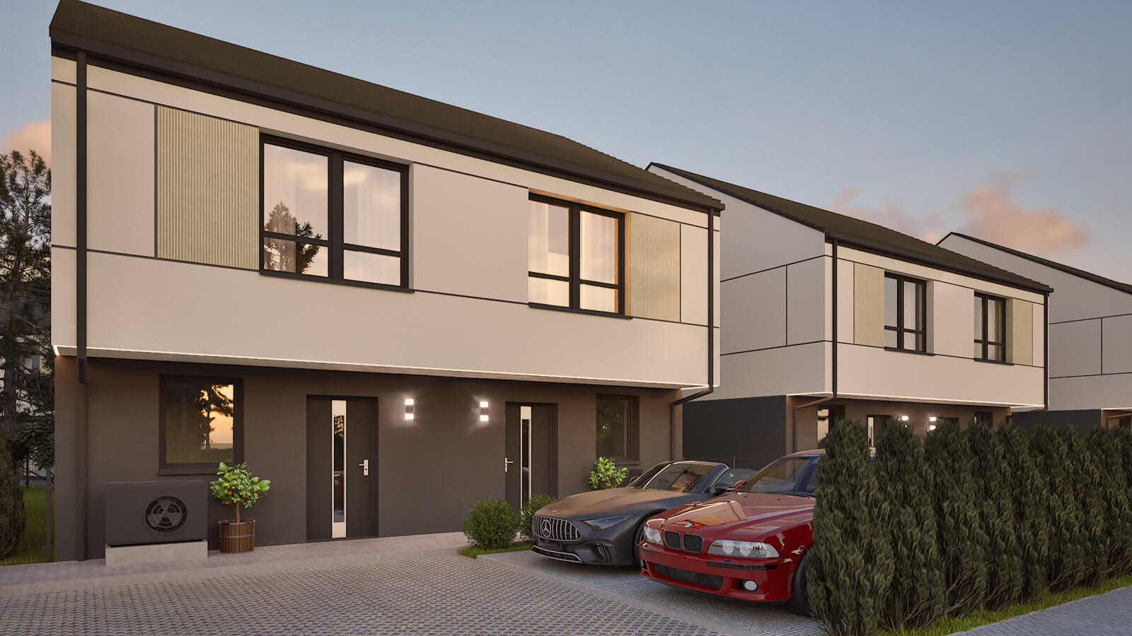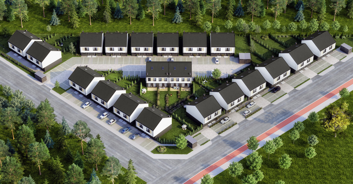 Kameralne osiedle zaprojektowane z myślą o komforcie, funkcjonalności i nowoczesnym stylu życia. Na osiedlu powstanie 40 przestronnych lokali mieszkalnych w zabudowie bliźniaczej (20 budynków). Każdy dom to dwupoziomowy lokal z własnym ogródkiem, powierzchnią strychową oraz dwoma miejscami postojowymi.